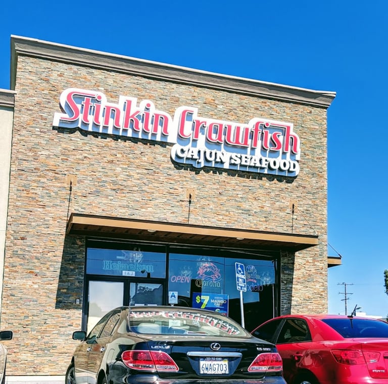 Join us at Stinkin Crawfish Gardena for happy hour and fresh Cajun seafood in a lively, modern setting.