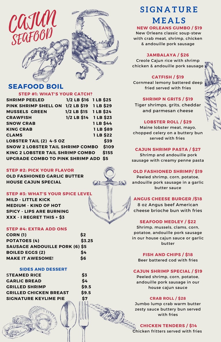Savor the bold flavors of our Cajun seafood specialties.